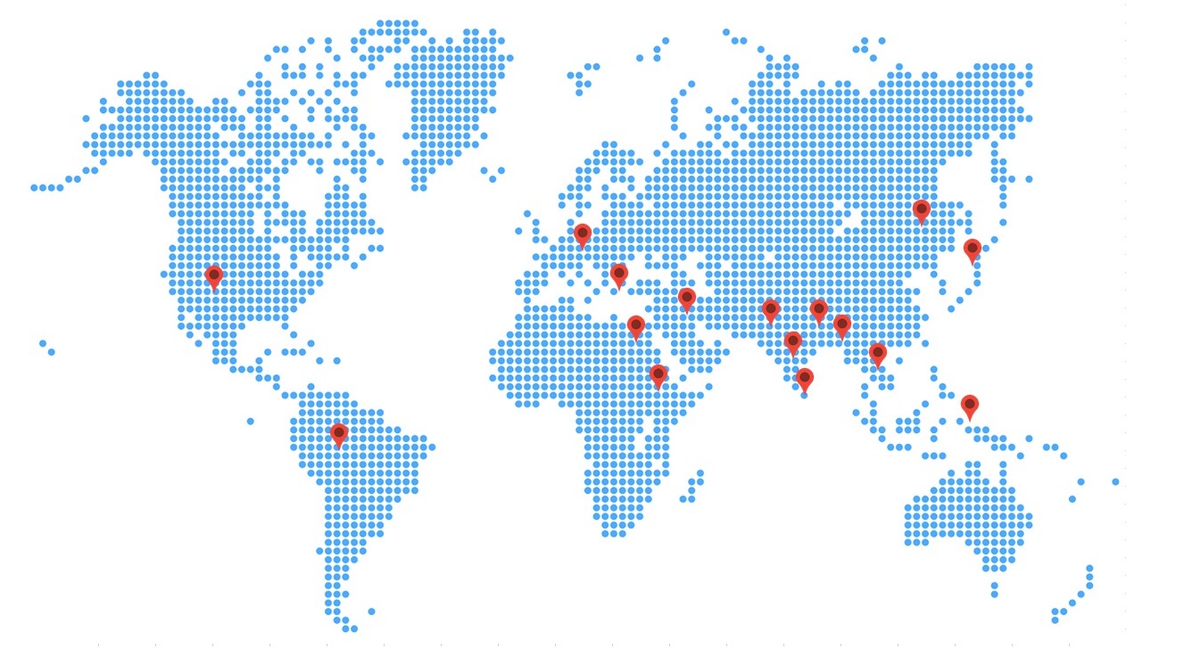 covering sites in Asia, Oceania, Middle East, Americas, Europe.